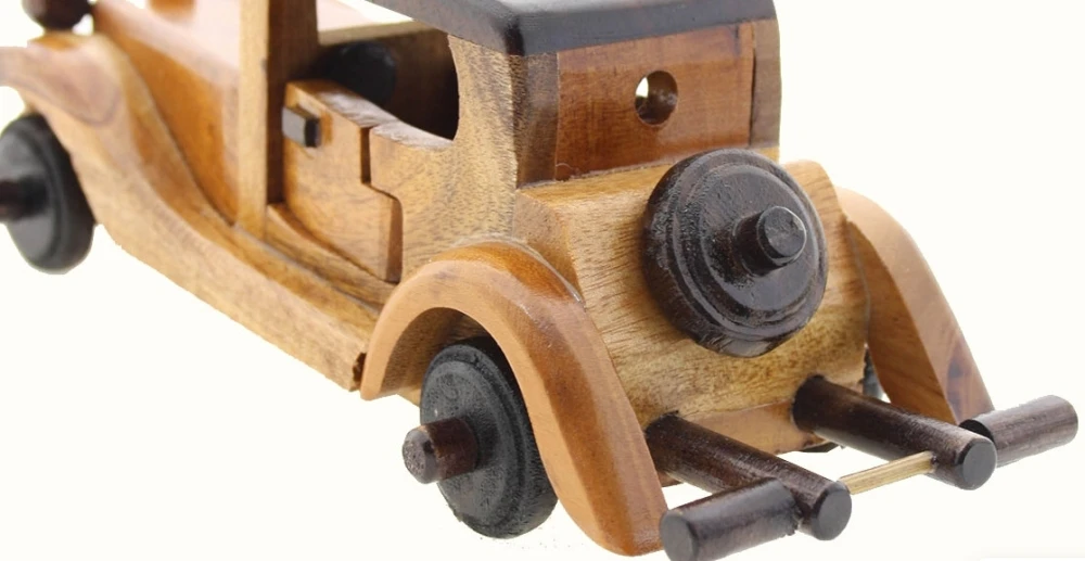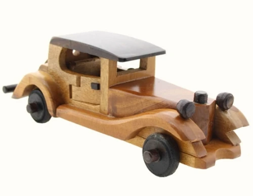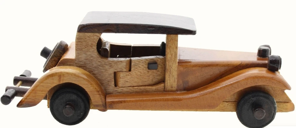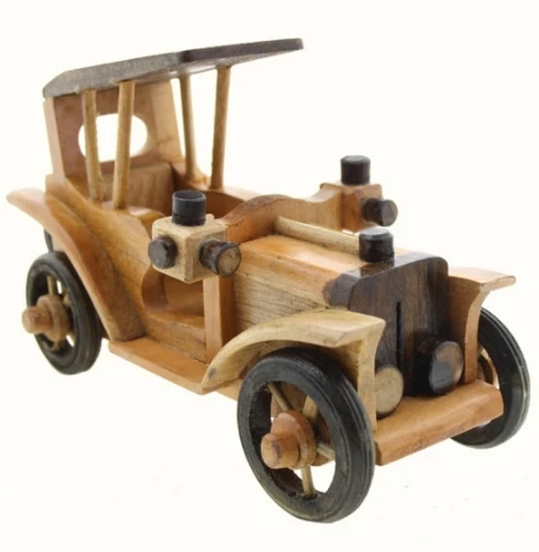 AUTO D’ EPOCA MODELLINO IN LEGNO VECCHIA LIMOUSINE Originali modellini in legno realizzati a mano assemblando legno chiaro e medio con particolari noce scuro da artigiani thailandesi. Macchinine d’epoca, modello limousine, graziosissime come soprammobili, abbelliscono e ornano ogni ambiente.