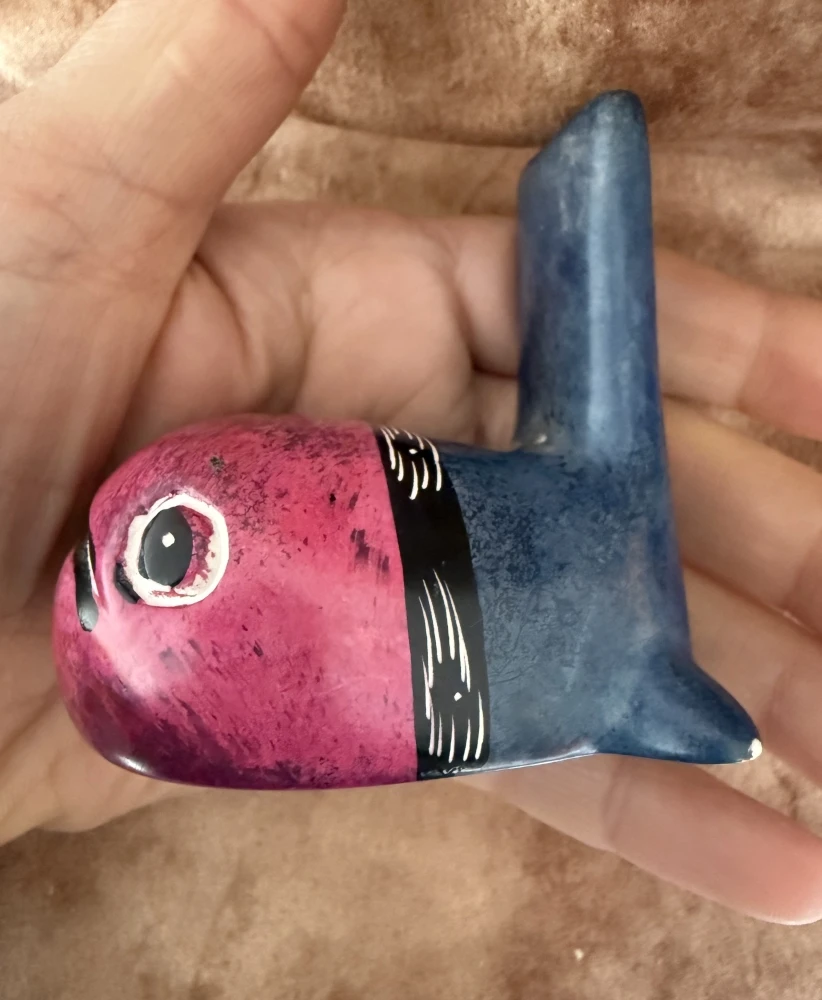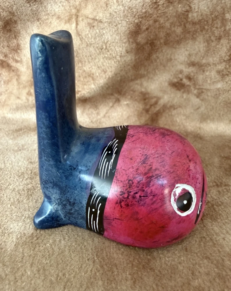 Pesce in pietra ollare prende vita attraverso una tavolozza di colori intensi e motivi geometrici dipinti a mano Ogni fascia cromatica racconta un...