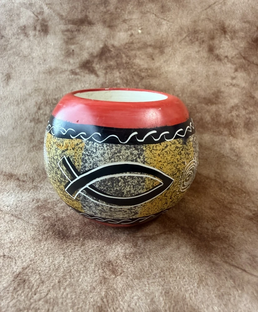 Ciotola portacandele rotonda lavorata e dipinta a mano peso consistente circa 7 cm diametro