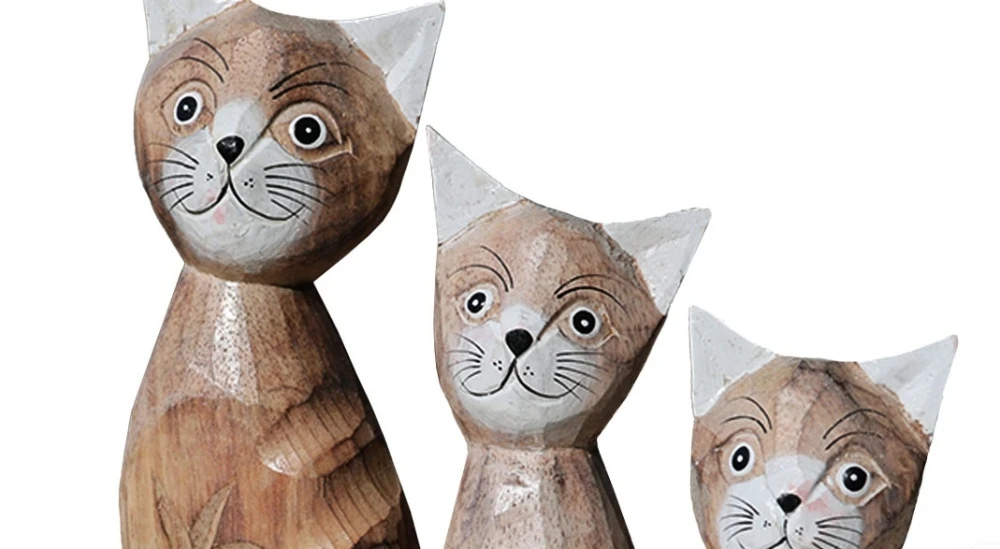 GATTI IN LEGNO SIAMESI DIPINTI A MANO ( SET 3 PZ. CM 15-20-25 ) 8342 Graziosissimi set di 3 micetti di misure differenti, realizzati in legno esotico con tecniche manuali da artigiani indonesiani. Deliziosa famiglia dall’espressione dolce e simpatica sono dipinti a mano, con cura, e rifiniti minuziosamente nei particolari. Disponibili color noce medio con particolari in nero e bianco, decapato bianco con particolari bianchi e decapato bianco con particolari azzurri.