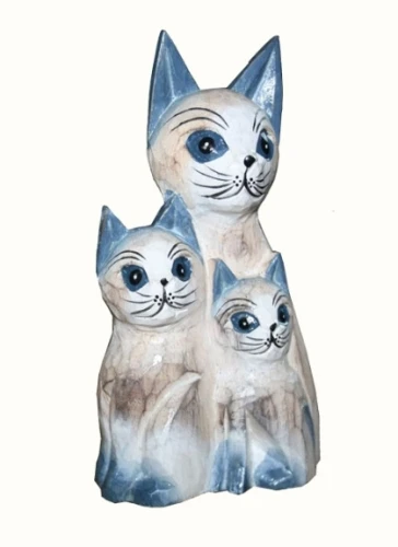 Graziosa famiglia di micini intagliati e dipinti a mano, interamente artigianali provenienti dall’Indonesia. Dolci e teneri micetti donano un delicato tocco ad ogni ambiente. Disponibili color bianco decapato .