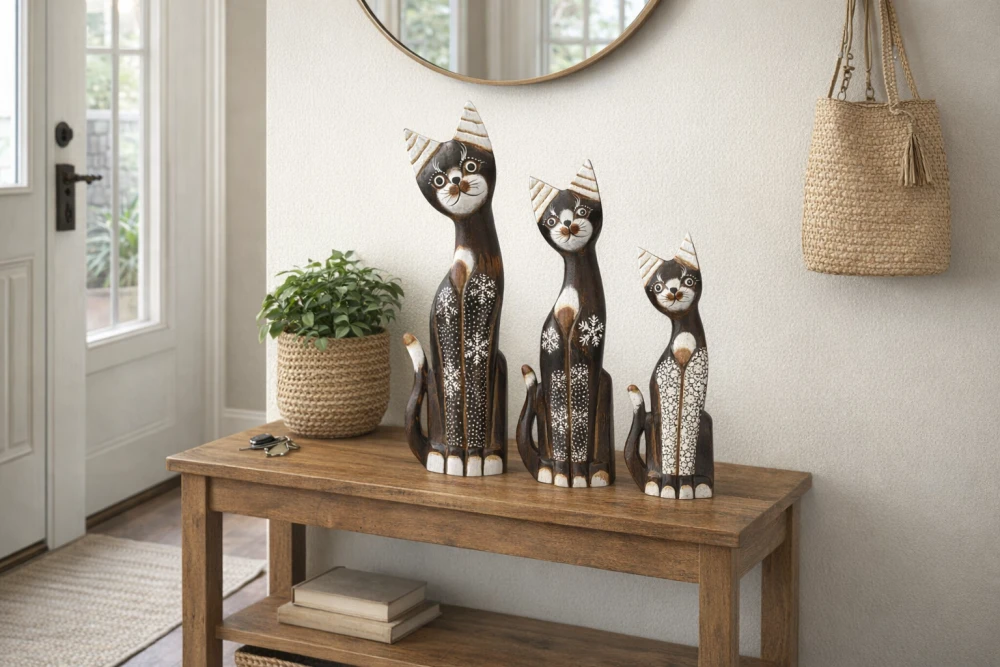Gatti in legno dipinti a mano – L’eleganza dell’artigianato indonesiano per la casa contemporanea