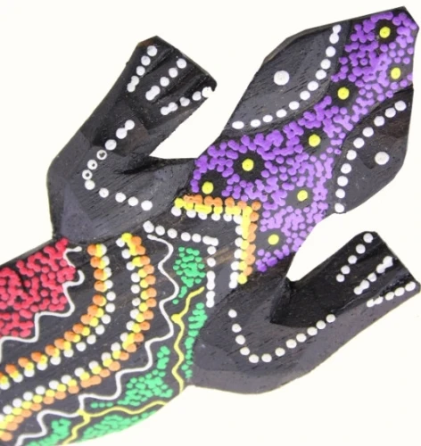 Graziosi set di 3 pz. Di gechi puntinati di differenti lunghezze, realizzati in legno intagliati e dipinti a mano con una finitura puntinata molto elaborata. Adatti sia da appoggio che da appendere alle pareti, donano un tocco di colorata etnicità. Disponibili in colori assortiti.