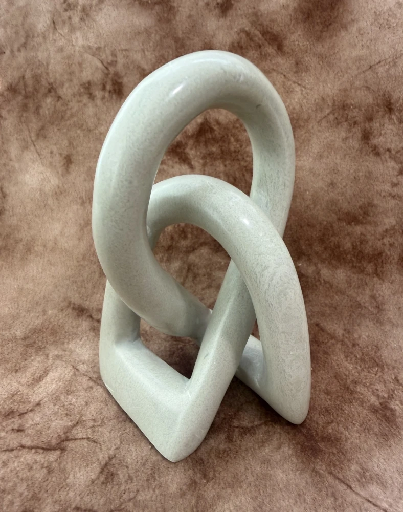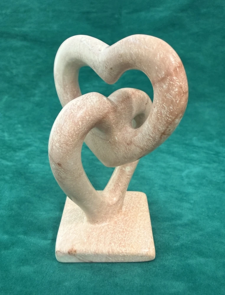 Le sculture intrecciate in pietra ollare — come i cuori doppi, le forme continue, gli abbracci scolpiti — sono oggetti che parlano di legami, equilibrio, armonia. La loro forza sta nella semplicità: linee morbide, curve che si incontrano, superfici levigate che catturano la luce.