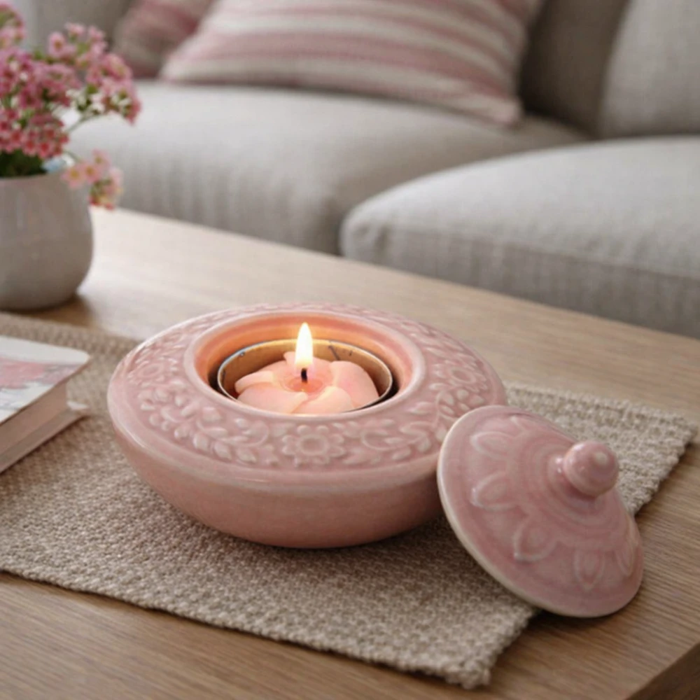 Portacandele floreale in ceramica con coperchio – eleganza che illumina