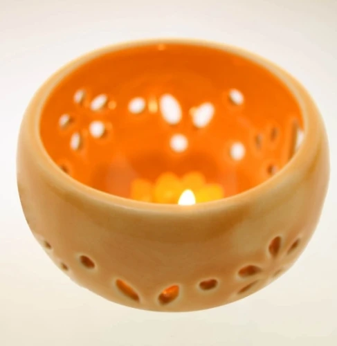 Semplici, ma graziosi portacandele a forma di ciotolina, realizzati a mano da artigini thailandesi n ceramica smaltata, con trafori orientali ad effetto Mille e una Notte, adatti per diversi modelli di candele. Regalano all’ambiente un delicato e delizioso tocco etnico.