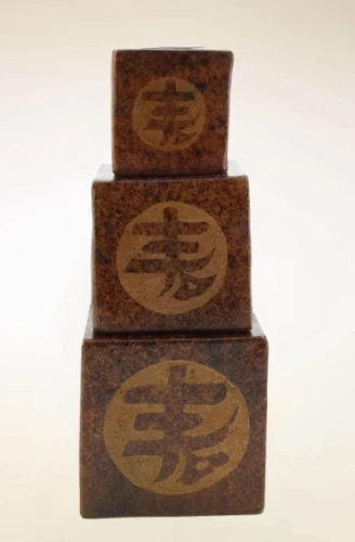 PORTACANDELE IN TERRACOTTA CON IDIOMI GIAPPONESI ( set 3 pz.), portacandele terracotta a cubo stile giapponese